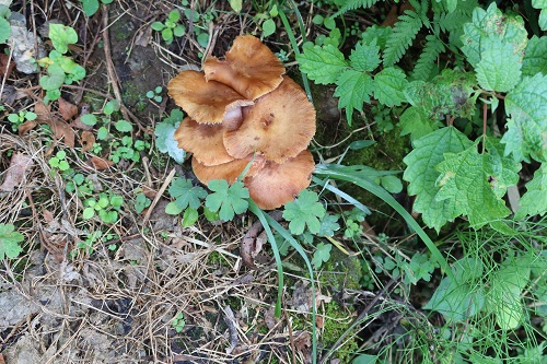 「ツバタケ」が土手に顔を出していた、ウドンに入れて食べれば味が出る。