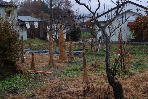 中央は「イチジク」の囲いで寒さに弱いので特に厳重にしてあります。