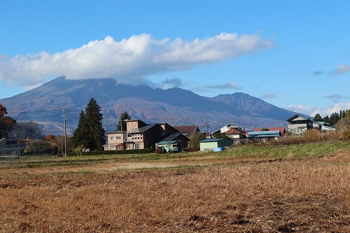 「飯綱山」だ、稲刈りが終わり長閑な風景だ。