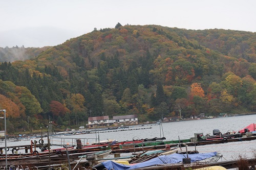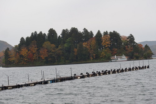 野尻湖の弁天島、これから更に紅葉が進むか?